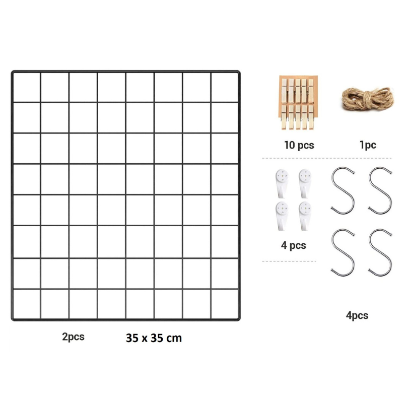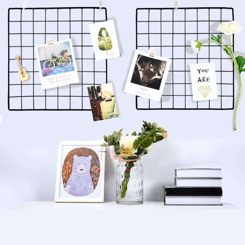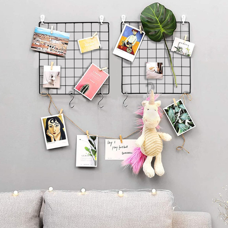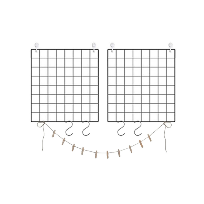 Set de 2 Paneles de Varilla Metálica Multifuncional Para Colgar Fotos y Arte